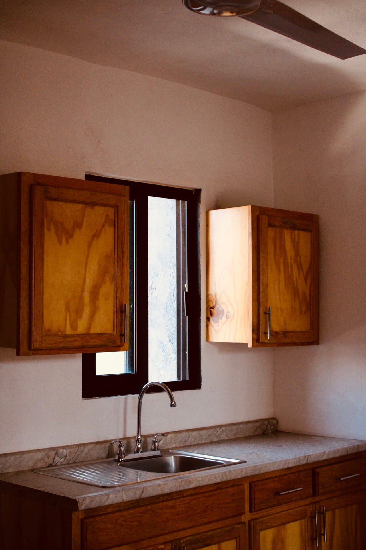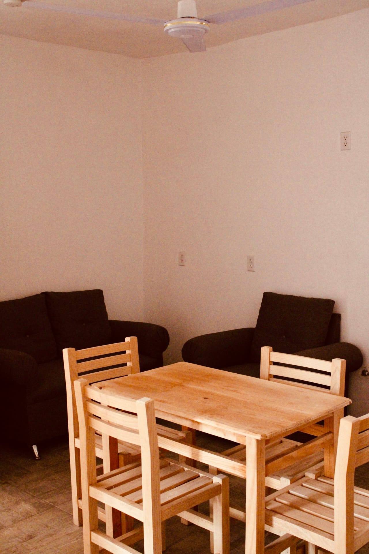 Sala (sofá de dos plazas y sillón individual), comedor, baño completo, ventanas con vista a la calle, ventiladores, camas matrimoniales, clóset y 1 buró a cada costado de las camas.