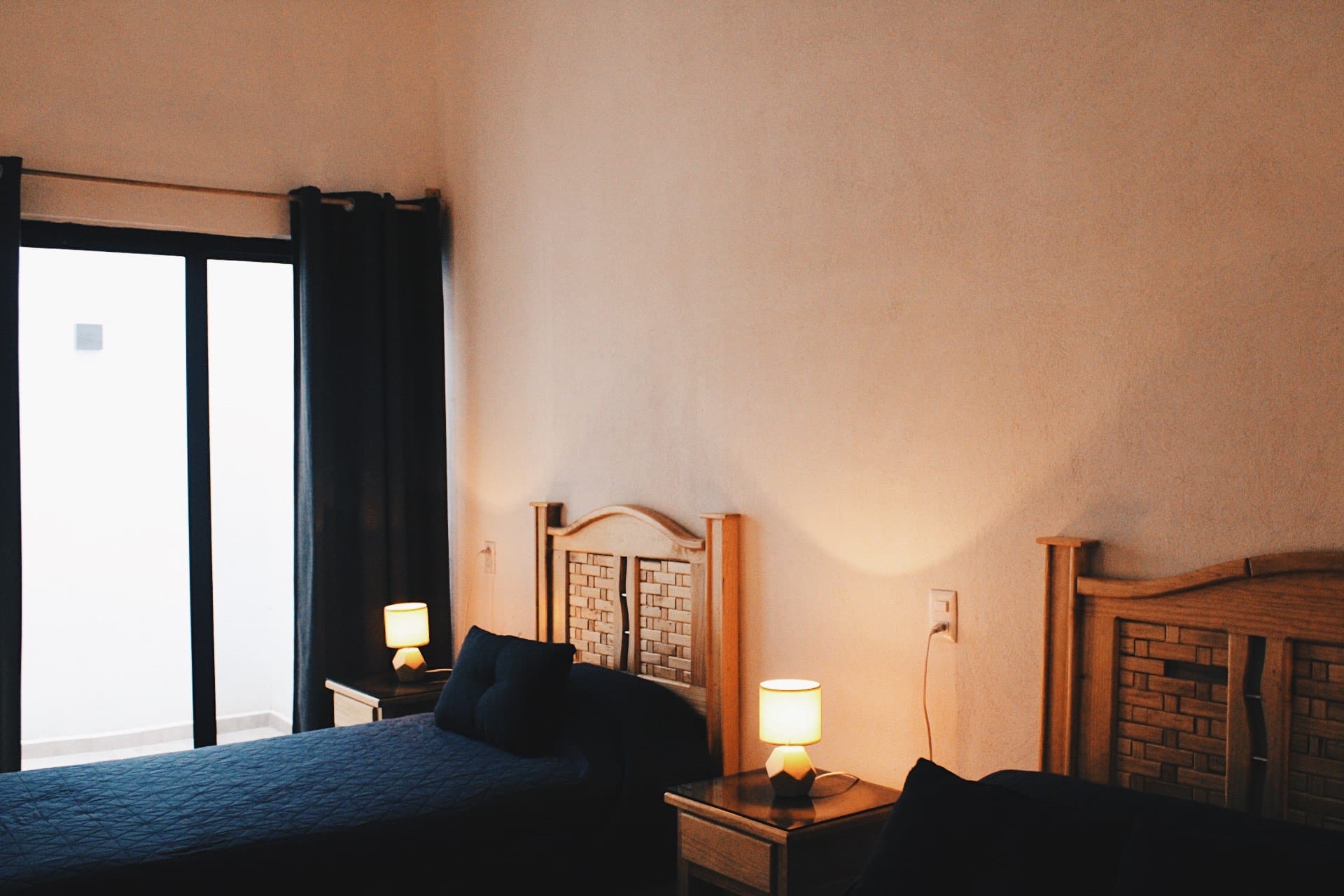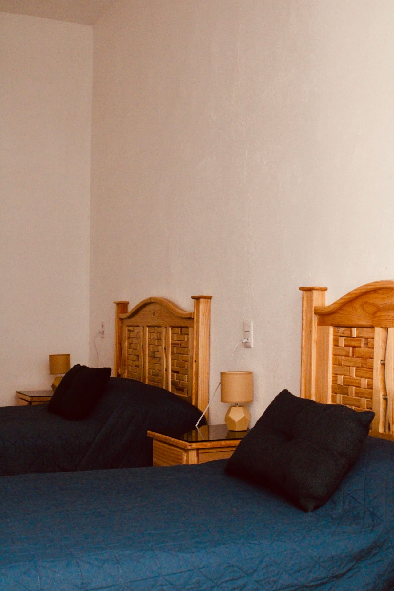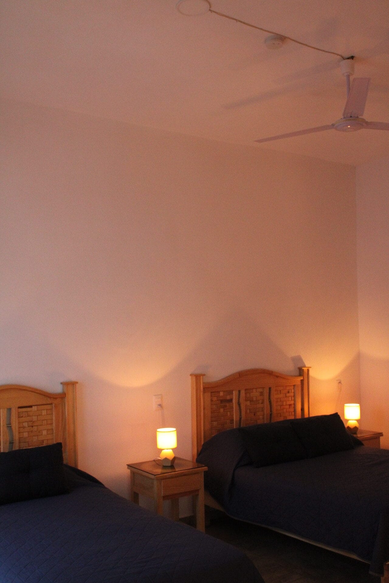 Nuestra habitación doble ha sido diseñada para brindar confort y descanso en un ambiente acogedor. Cuenta con dos cómodas camas matrimoniales, ideal para tres adultos y un menor, y un espacio cuidadosamente acondicionado para garantizar tranquilidad, privacidad y una estancia placentera. Es la opción perfecta para quienes buscan simplicidad, comodidad y una experiencia de descanso de calidad.