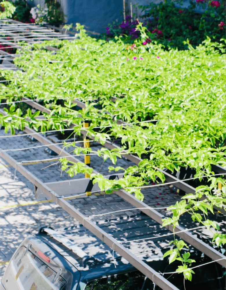 • Estacionamiento con techo verde que ayuda a la regulación térmica